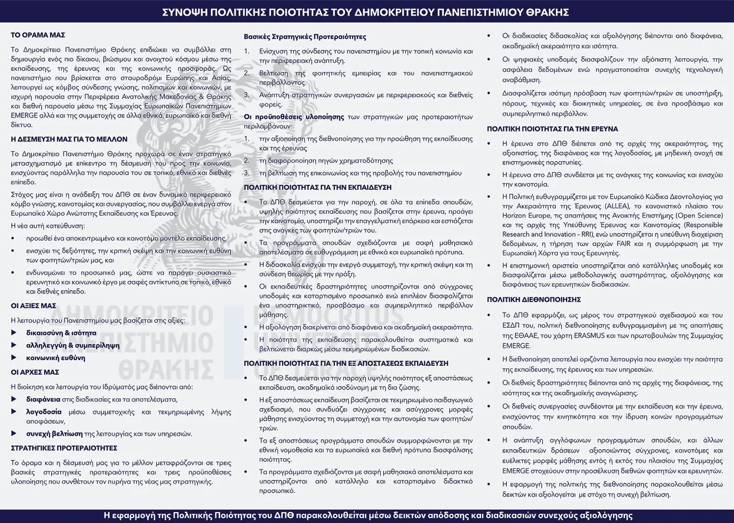 Μπορείτε να κατεβάσετε το πλήρες κείμενο της Πολιτικής Ποιότητας του ΔΠΘ εδώ